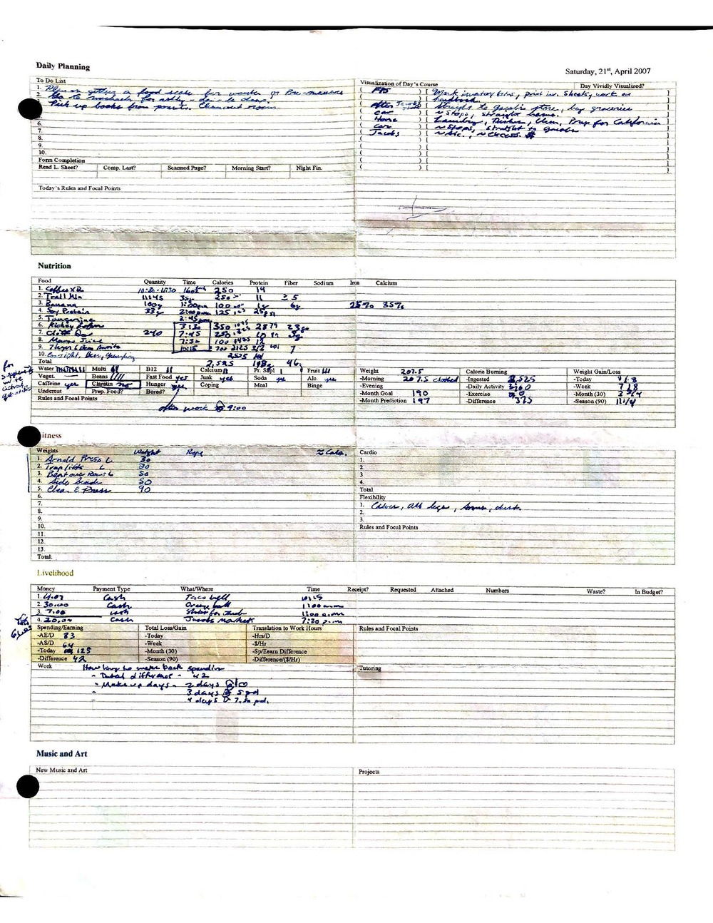This is a highly personal and private document, shared for transparency, to give additional background on my work in moral philosophy. Its purpose is to enable personal self-help, but the overarching goal is moral in nature. I kept personal forms to track important activities in my life for a long period of time, and used the process to understand what it takes to make large amounts of personal changes independently. It is large, at ~410 MBs, and over 500 pages, so might take a bit to download and view. Not every form I filled was kept and included in this archive, and I suspect perhaps a hundred or so went missing. I kept very good records, but I do find pages on occasion that did not make it into the binder.