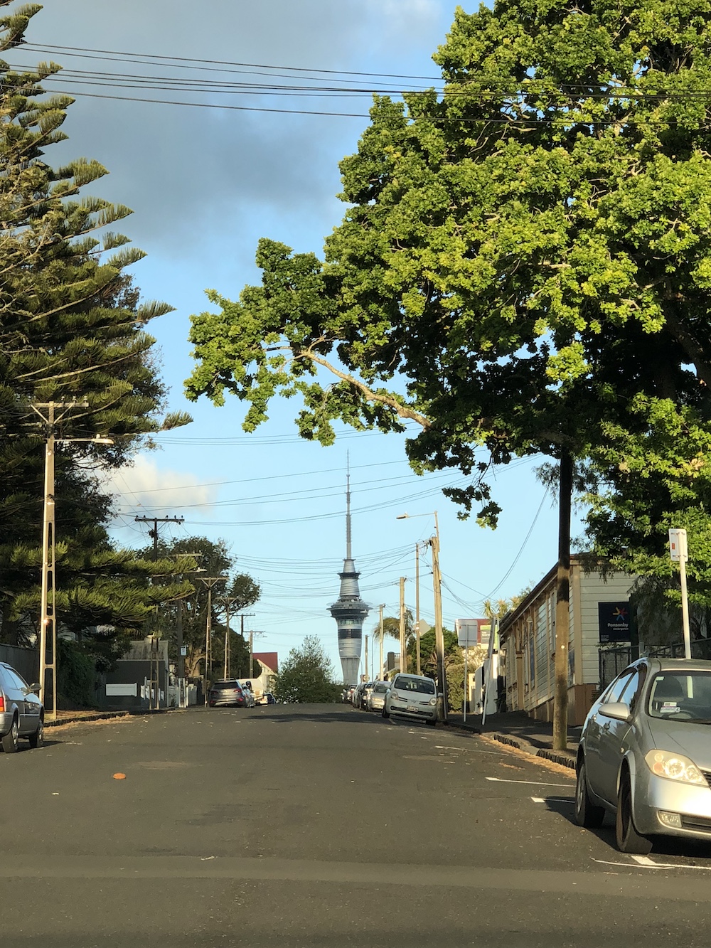 A view of Sky Tower in Auckland, NZ, from The Great Ponsonby Art Hotel.