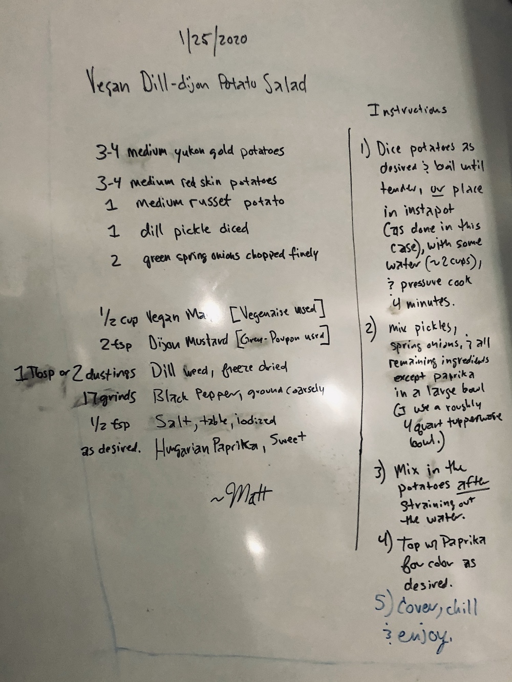 Vegan Dill-Dijon Potato Salad, 1/25/2020